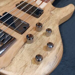 O braço é uma verdadeira obra de arte, construído em 5 peças, com um intercalado de maple e jatobá, com perfil “thin U”, a escala em roasted jatobá com 24 trastes extra-jumbo, garantem timbres quentes, um lindo visual e muito conforto, para tocar a noite toda. O LTD B-204SM tem resposta rápida, reprodução precisa e muito equilíbrio entre as cordas. Os captadores humbucker ESP de baixo ruído (passivos) com EQ ativo, ponte string-through e ferragem em black nickel, completam o pacote desse lindo instrumento.