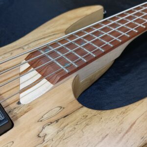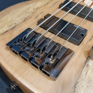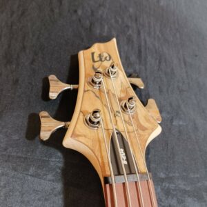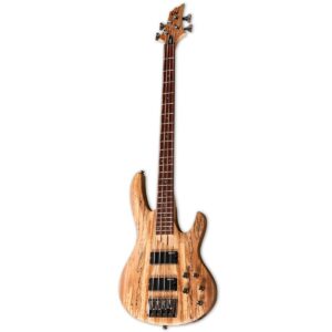 Modelo: ESP LTD B-204SM NS Corpo: B em ash c/ tampo em spalted maple Braço: Maple/jatobá Thin “U” shape (5 pçs) Escala: roasted jatobá com 34″ (864 mm) Trastes: 24 trastes exta jumbo Raio da escala: 13,78″ (350 mm) Largura do nut: 1.575″ (40 mm) Tarraxas: LTD blindadas Die-Cast Ponte: LTD BB-604 String-through-body Ferragens: black nickel Captadores: passivos com circuito ativo