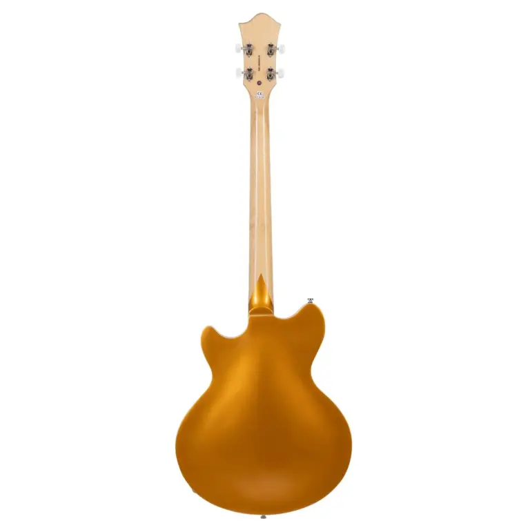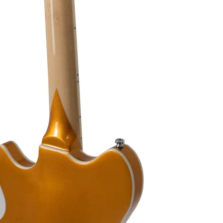 Tagima Ekosonic Bass GD, um contrabaixo semiacústico que combina sonoridade vintage, visual sofisticado e conforto excepcional. Seu corpo é construído com tampo em Spruce e laterais e fundo em Flamed Maple, entregando timbre encorpado e ressonância natural. O braço em Hard Maple aliado à escala em Rosewood 30.3’’ oferece excelente tocabilidade, ideal para linhas de baixo expressivas com definição e sustain. Os 22 trastes médios em níquel e o nut em osso de 42mm completam o equilíbrio entre precisão e resposta sonora.