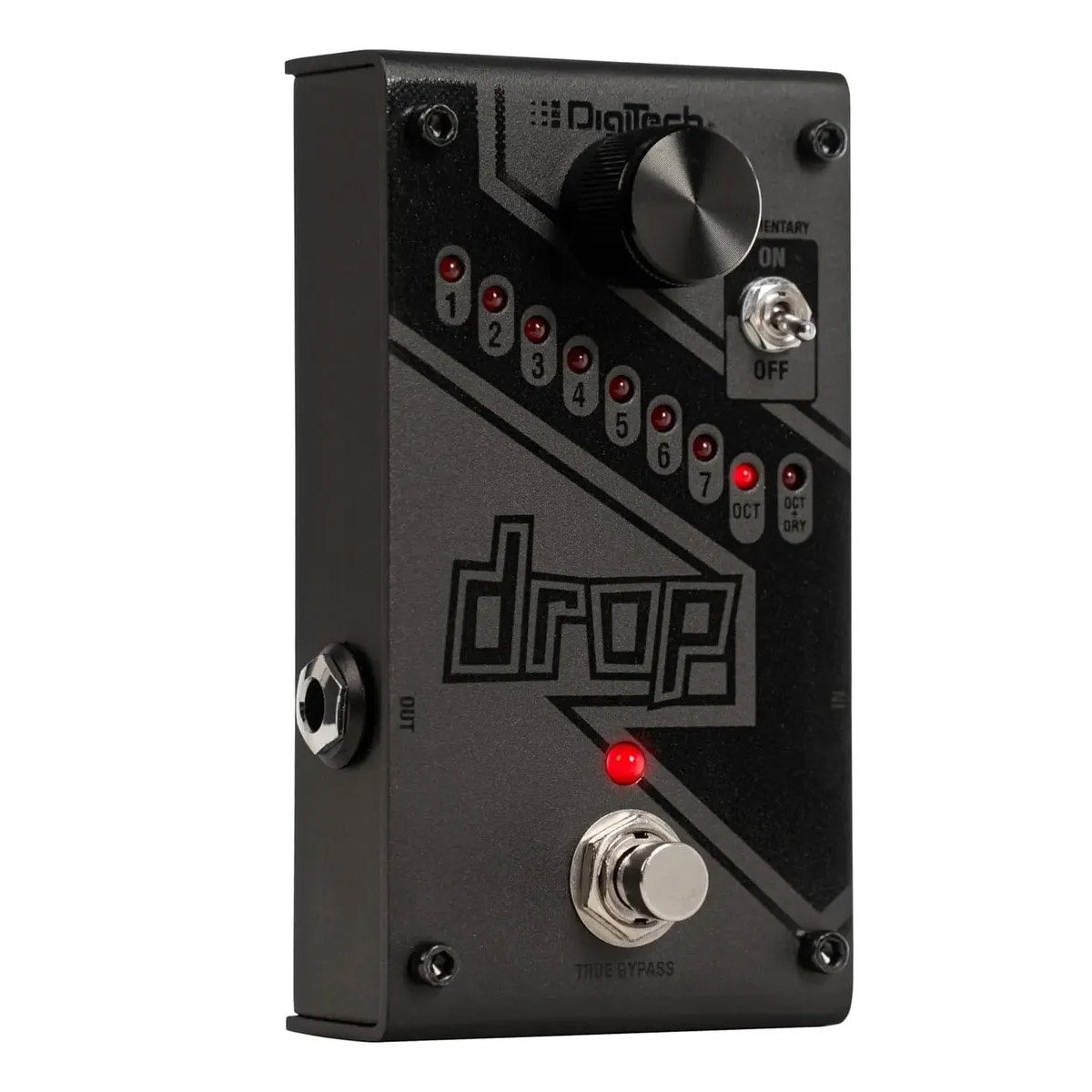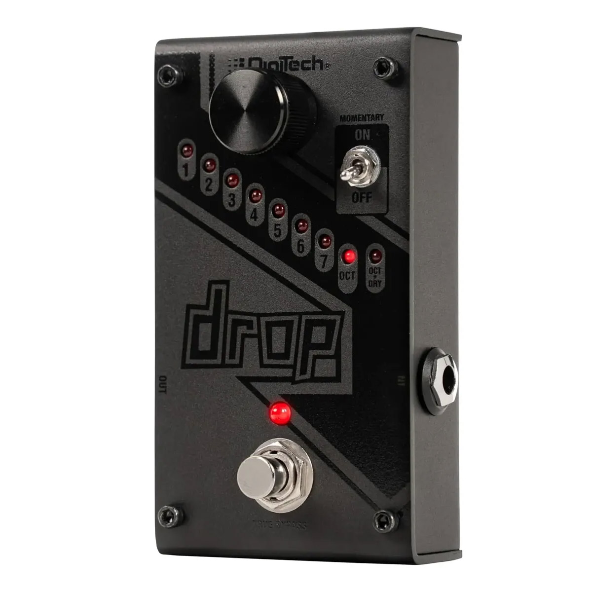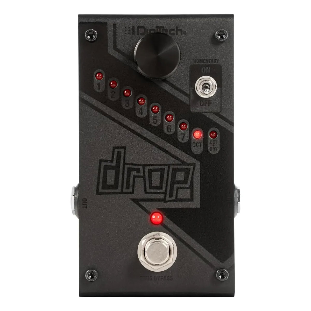 O DigiTech Drop Limited Black Edition é um dos pedais mais conhecidos para drop tuning instantâneo, permitindo que guitarristas e baixistas alterem a afinação sem precisar trocar de instrumento ou reajustar cordas. Ele possibilita reduzir a afinação de 1 a 7 semitons ou até uma oitava completa, mantendo a integridade dos acordes graças ao processamento polifônico.