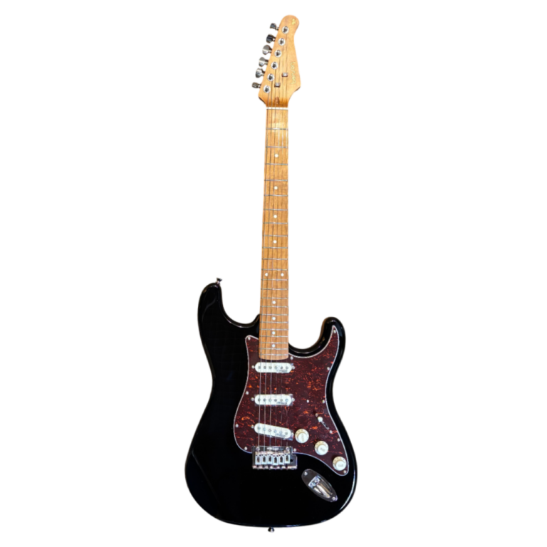 Apresentando o modelo 901 BK/TT da série Hardy, esta guitarra é uma obra-prima de engenharia e design, destinada a elevar sua experiência musical a um novo patamar. Com um corpo de Alder que oferece ressonância profunda e um braço de Roasted Maple em formato C para conforto e jogabilidade excepcionais, a Benson 901 garante uma experiência de toque suave e responsiva. Os captadores Wilkinson Single Coil Alnico 5 proporcionam uma variedade de tons ricos e expressivos, enquanto a ponte Wilkinson Tremolo WOV6 oferece estabilidade de afinação e ação suave. Além de sua excepcional qualidade sonora, a Benson 901 apresenta um design elegante e durável.