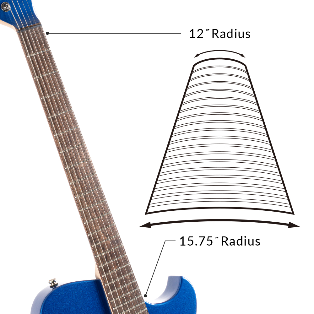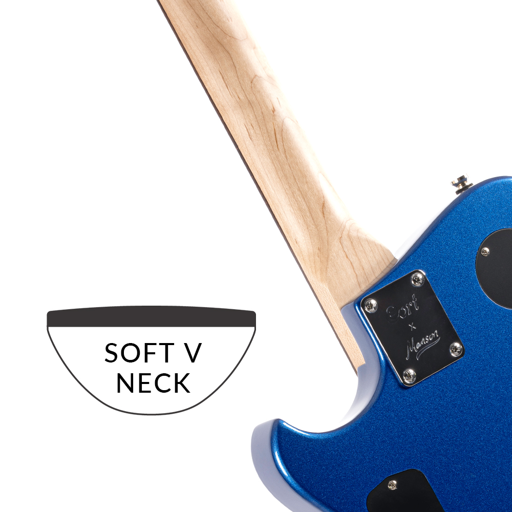 O conforto e a tocabilidade ficam por conta do braço com perfil Soft V da Manson, reconhecido mundialmente por seu encaixe perfeito e acabamento acetinado que oferece sensação de instrumento “já tocado”. A escala de raio composto (12″–15,75″) facilita desde acordes até solos rápidos, enquanto o tensor Hotrod com ajuste Spoke Nut permite regulagens precisas conforme o estilo de cada músico.