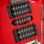 Guitarra Cort X200 CRD, estilo Superstrat, captação HSH Supersound, com 24 trastes, com corpo em Poplar e ponte 2 pivôs. No acabamento Candy Red.