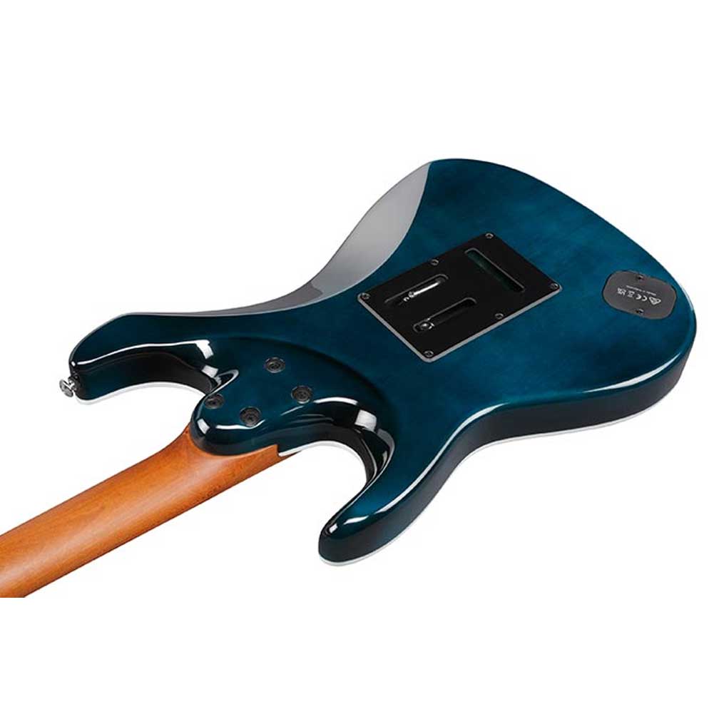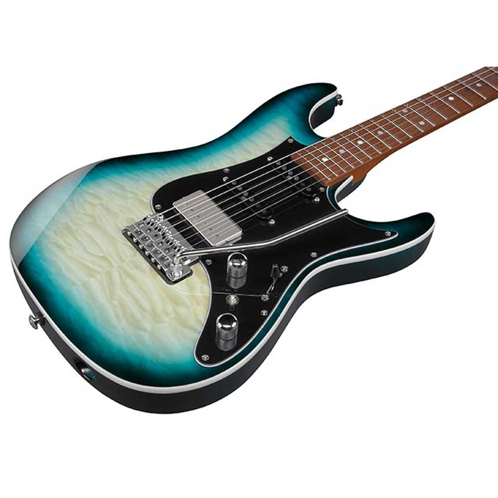 Guitarra Ibanez AZ24P1QM DOB, da linha Premium AZ, equipada com captadores Seymour Duncan, Tarraxas e Ponte Gotoh, escala em Roasted Maple, no elegante acabamento Deep Ocean Blonde..