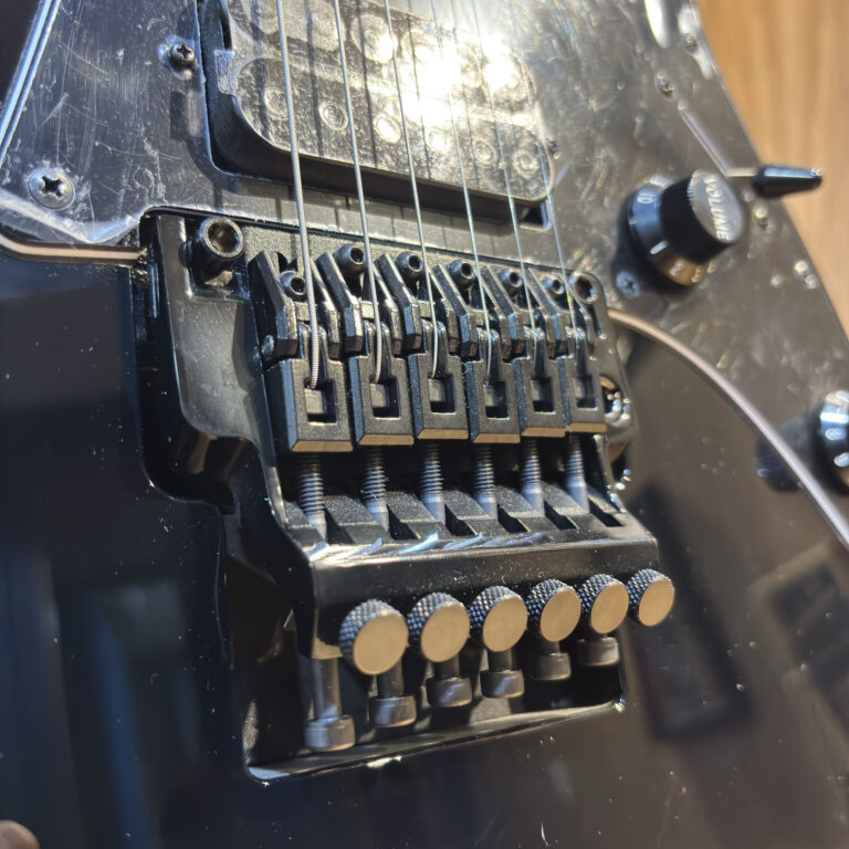 Tipo de Braço: Super Wizard 5pc Maple/Walnut Corpo: Basswood Escala: Maple Inlay: Pontos Pretos Trastes: Jumbo frets Número de trastes: 24 Ponte: Edge bridge Espaçamento de corda: 10.8mm Captador Braço: V7 (H) Neck Pickup Passive/Ceramic Captador Meio: S1 (S) Middle Pickup Passive/Alnico Captador Ponte: V8 (H) Bridge Pickup Passive/Alnico Afinação de Fábrica: 1E,2B,3G,4D,5A,6E Cordas: D’Addario® EXL120 Calibre das Cordas: .009/.011/.016/.024/.032/.042 Nut: Locking nut Cor das ferragens: Preto