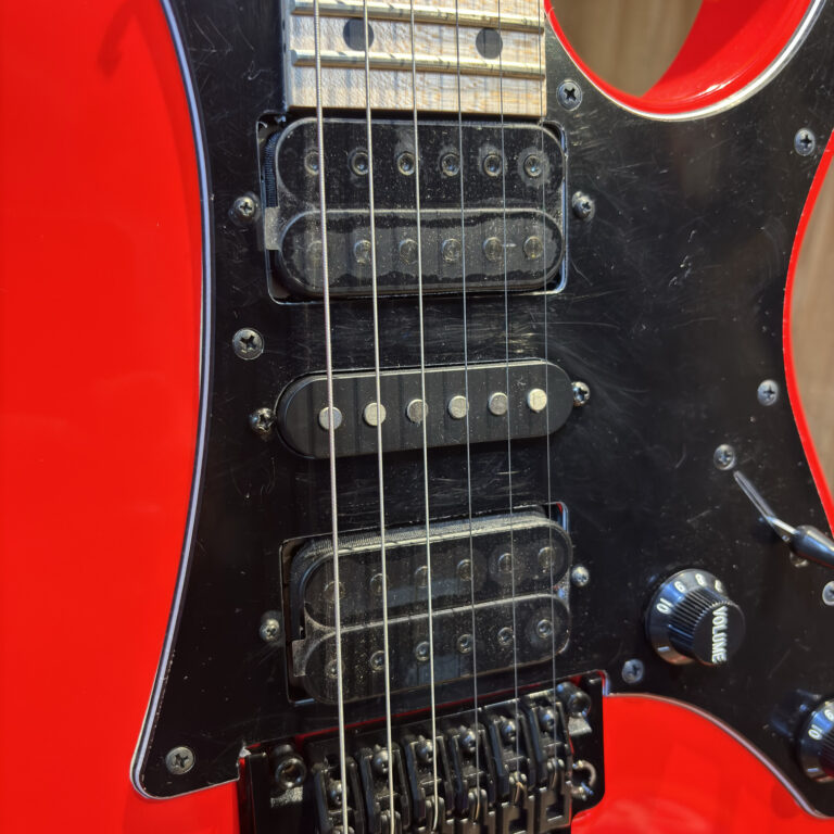 ESPECIFICAÇÕES Modelo: RG 550 RF Tipo do Braço: Super Wizard 5pc Maple/Walnut neck Corpo: Basswood Escala: Maple com marcação em pontos pretos Trastes: Jumbo Ponte: Edge Tremolo Captador Braço: V7 (H) (Passivo/Cerâmico) Captador Meio: S1 (S) (Passivo/Alnico) Captador Ponte: V8 (H) (Passivo/Alnico) Ferragens: Black