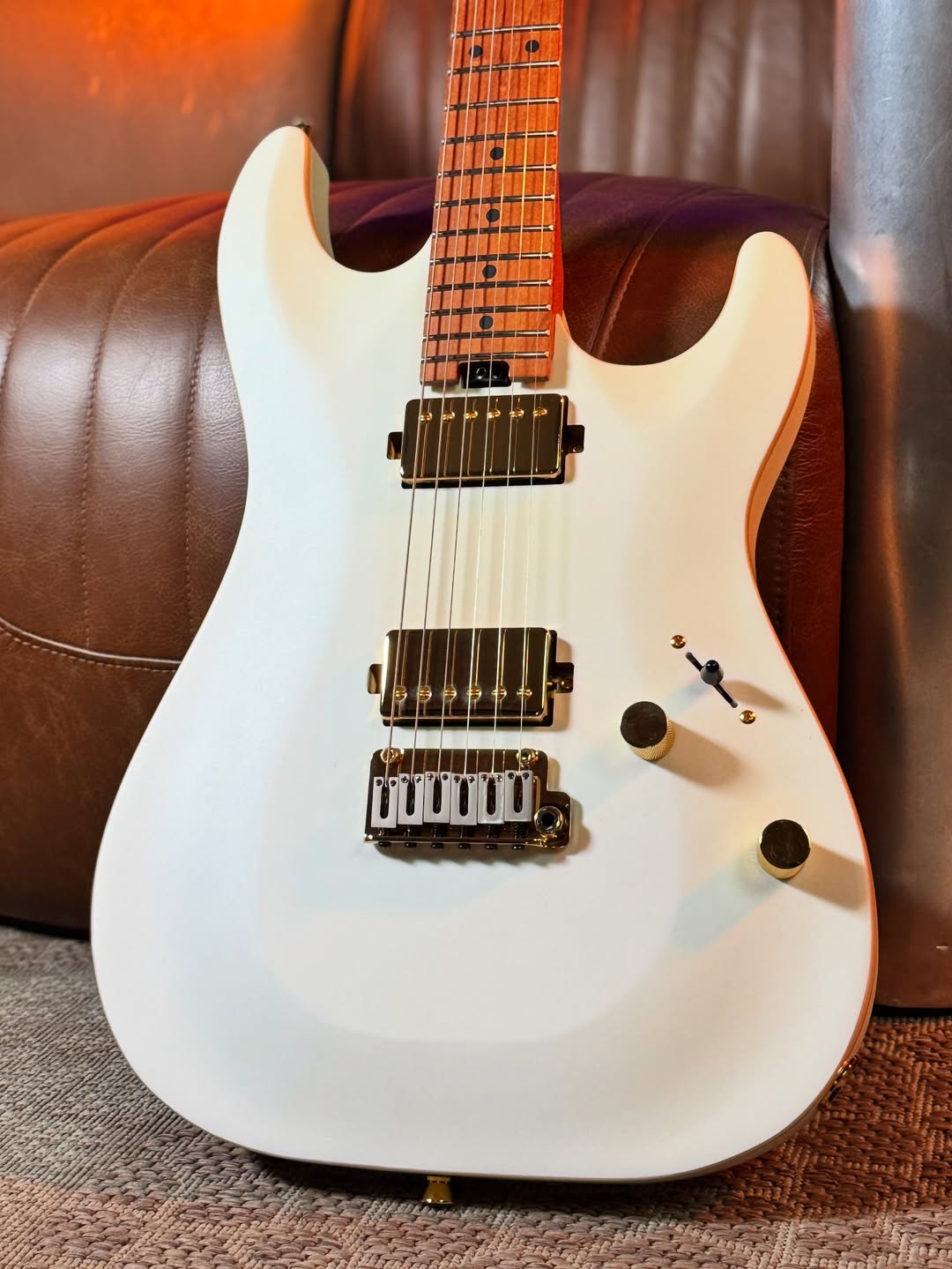 A Seizi Katana Aura White Storm é uma guitarra que nasceu para ser intensa. Seu timbre é puro ataque, com médios na medida certa e graves firmes que entregam presença em qualquer palco. Uma guitarra que une elegância e modernidade, mas que no som mostra sua verdadeira alma: brilho, potência e atitude. Se você busca uma guitarra que transforma cada riff em impacto e cada solo em pura emoção, ela é a sua voz. O palco é seu, liberte sua Aura.