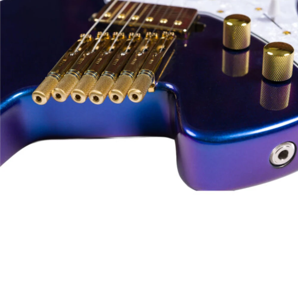 A Koi é a companheira perfeita para quem busca ergonomia e visual marcante. O corpo em Basswood com acabamento gloss oferece sustain equilibrado e peso reduzido, ideal para longas sessões de estudo e palco. O acabamentos Chameleon valoriza ainda mais sua estética futurista.