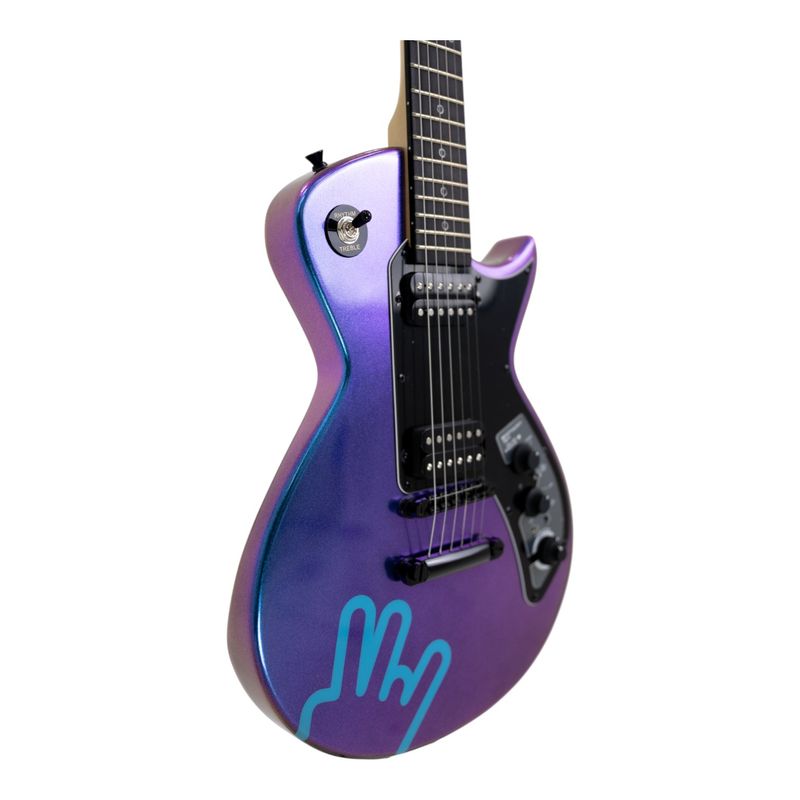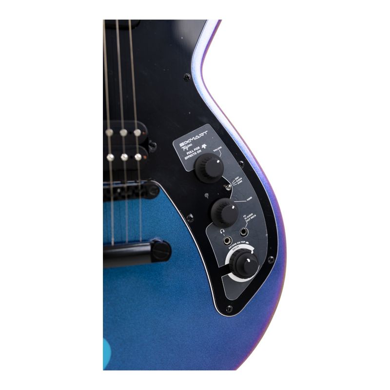 Modelo: Sixmart WHIND1 Signature Corpo: Poplar Braço: Maple (Shape C) Escala: Techwood High Density Comprimento da escala: 24.75’’ Número de trastes: 22 Ponte: Tune-O-Matic Captadores: 2 Humbuckers cerâmicos Controles: Volume, tonalidade, chave de 3 posições Efeitos integrados: Delay, Chorus, Reverb, Overdrive, Distortion Entradas/Saídas: Entrada AUX, saída de fone de ouvido Acabamento: Metallic Chamaleon Blue