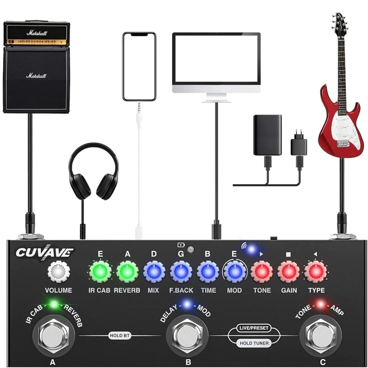 O M-Vave Cuvave Cube Baby é um pedal multifuncional projetado para guitarristas que querem explorar diferentes sonoridades sem precisar carregar vários pedais. Ele reúne em um só equipamento diversos efeitos clássicos, interface de áudio e até recursos modernos como gravação em celular e reprodução sem fio.