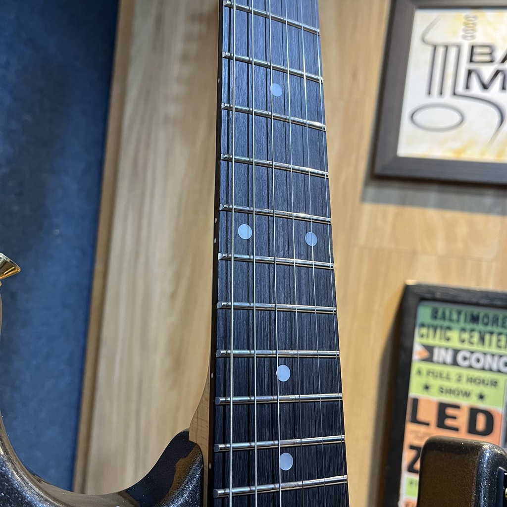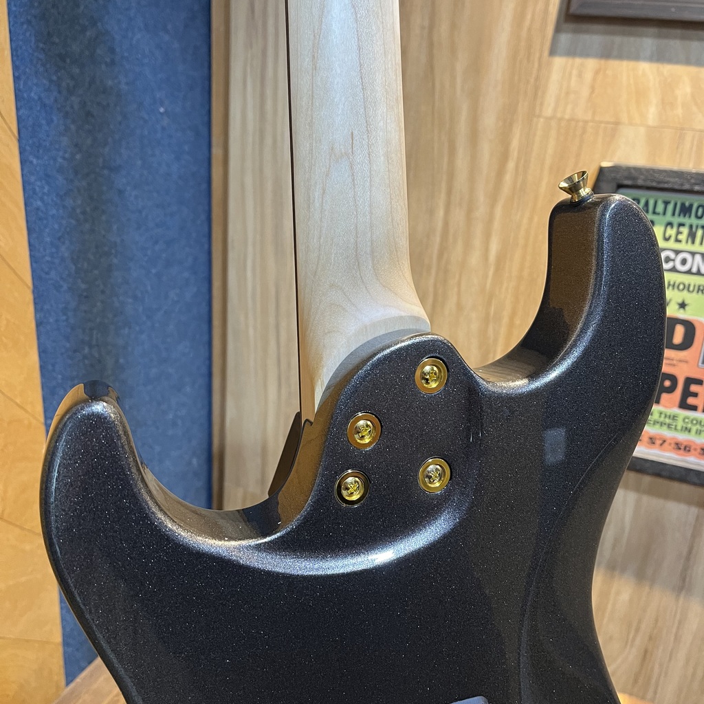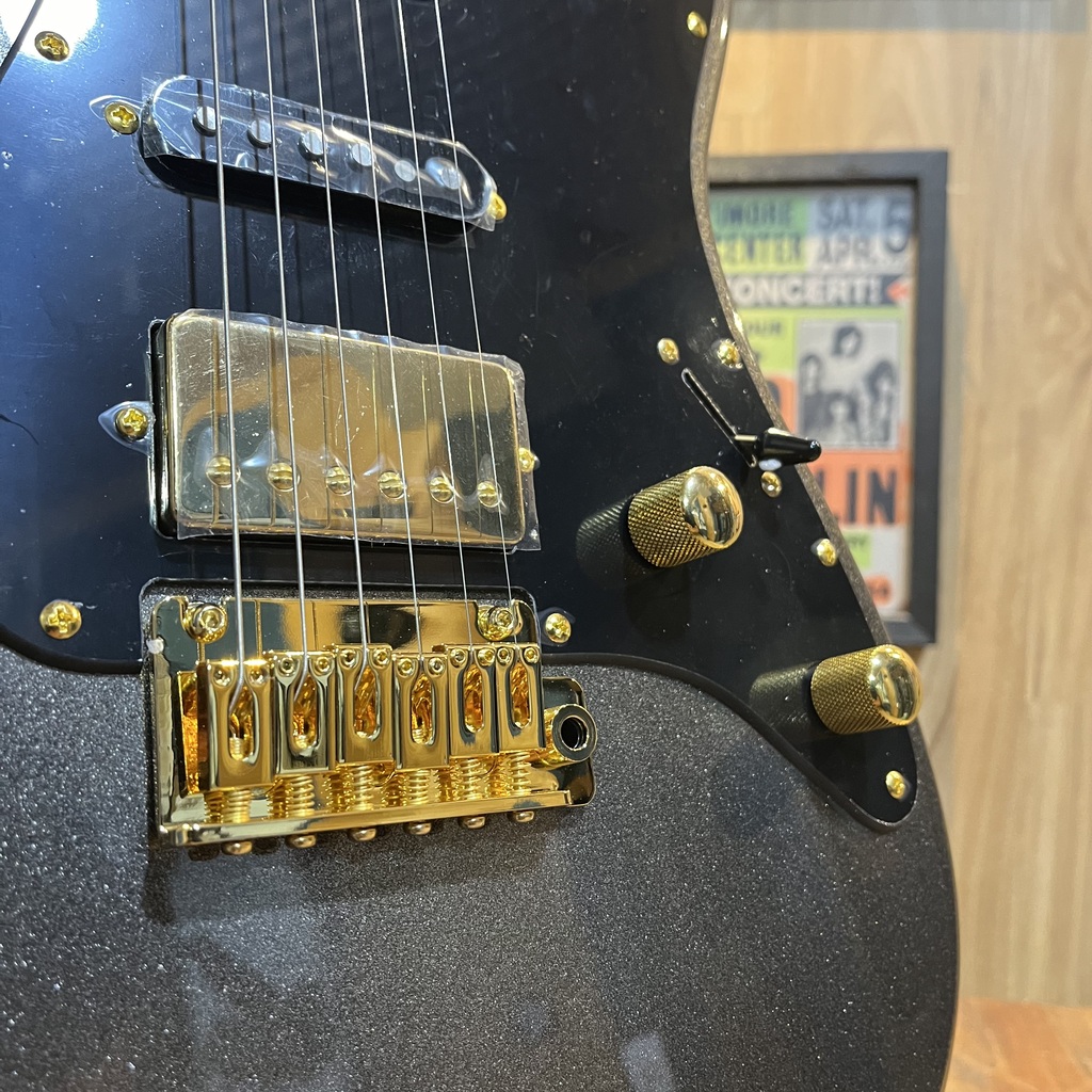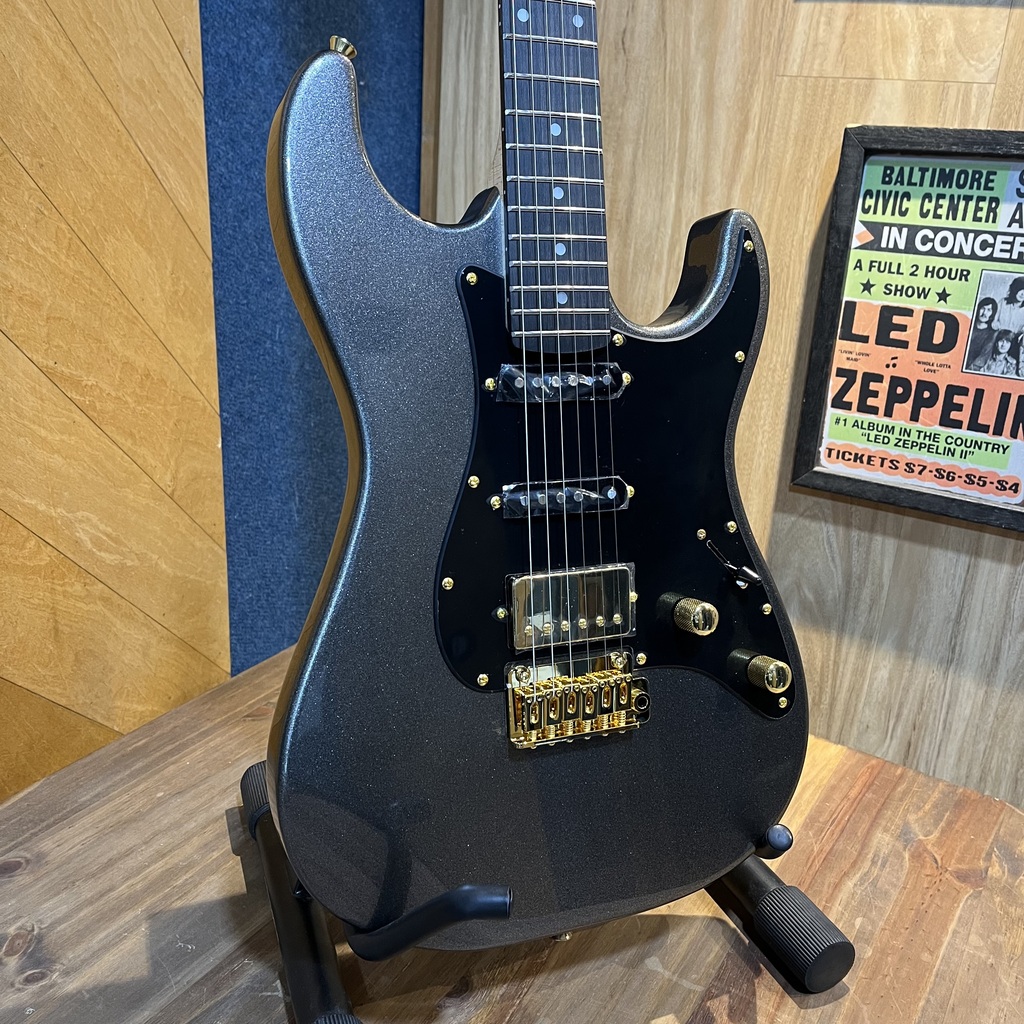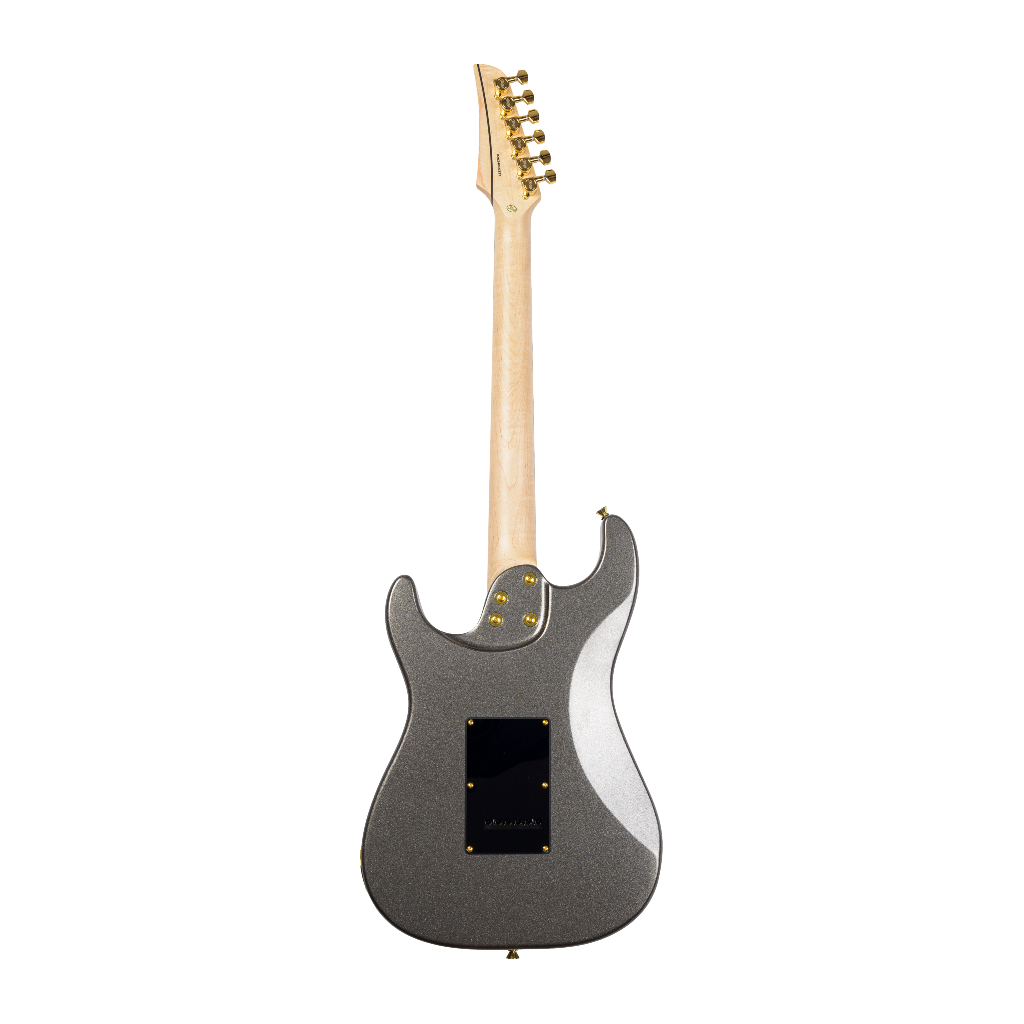 Seizi Katana Musashi Space Grey, Super Strato, HSS captadores em Alnico V, ponte 2 pivôs, trastes Inox. Ferragens douradas e acabamento Space Grey.