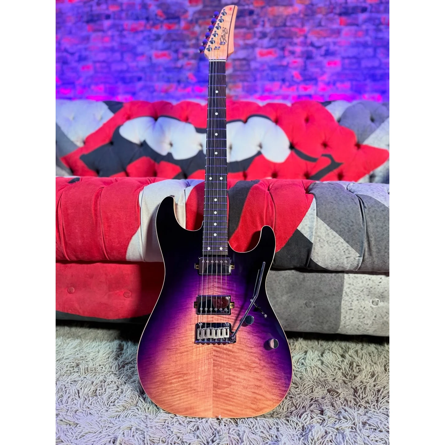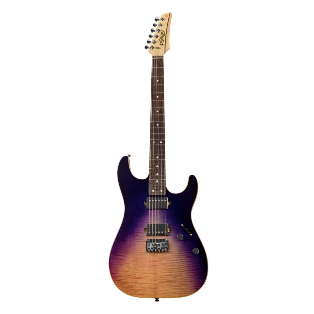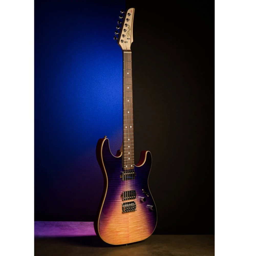 Seizi Katana Shadow Aurora Burst, Estilo Super Strato, HH, escala escura, ponte semi-flutuante, trastes Inox, captadores em Alnico V.
