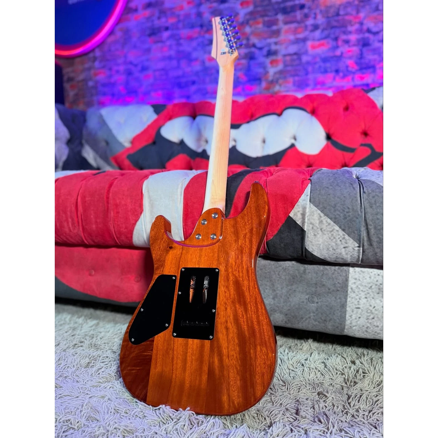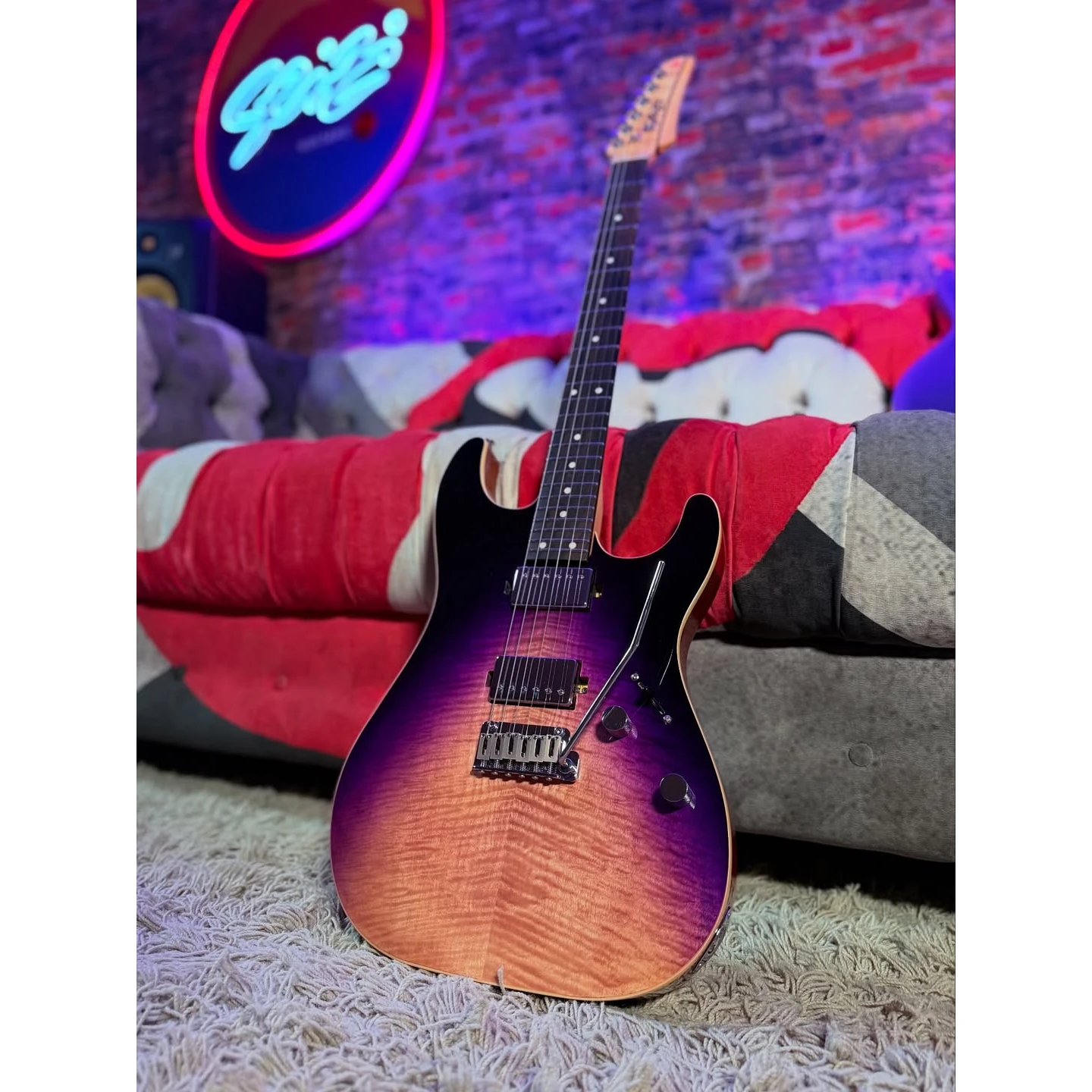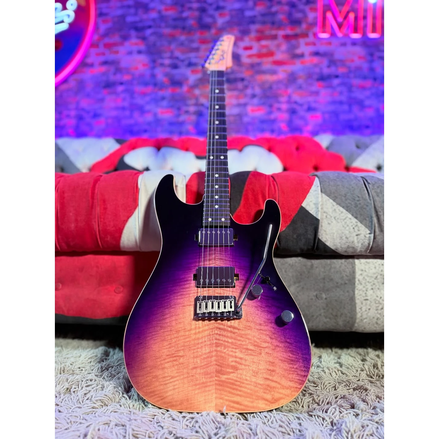 Seizi Katana Shadow Aurora Burst, Estilo Super Strato, HH, escala escura, ponte semi-flutuante, trastes Inox, captadores em Alnico V.