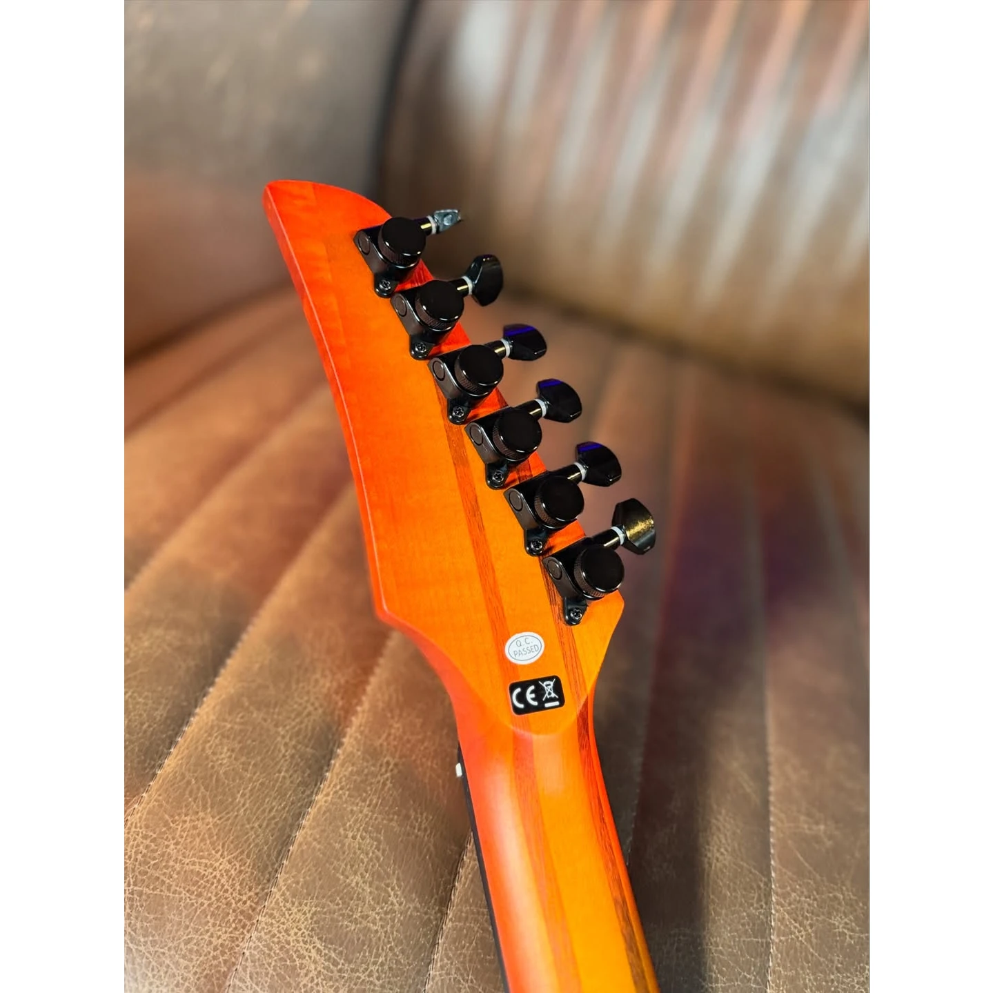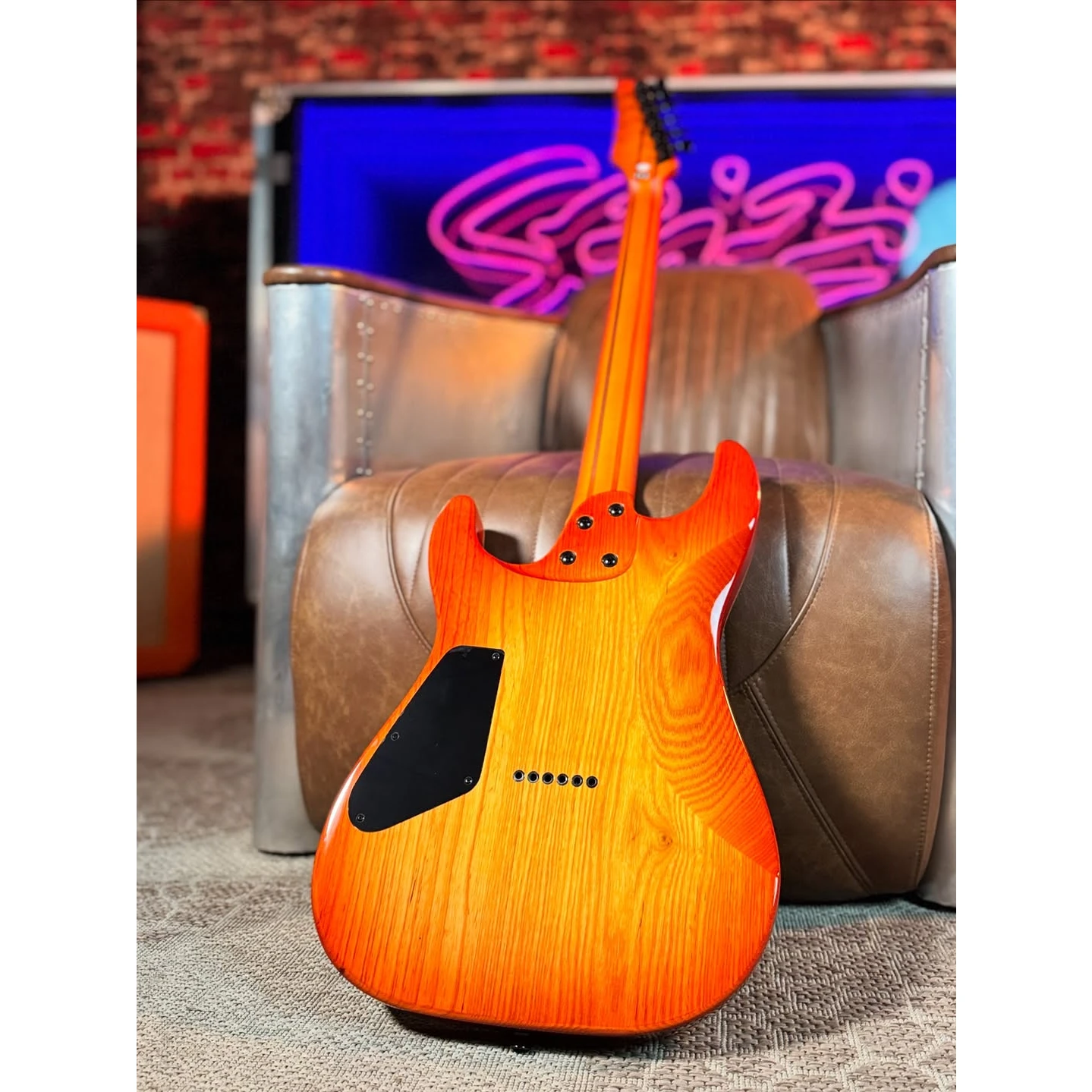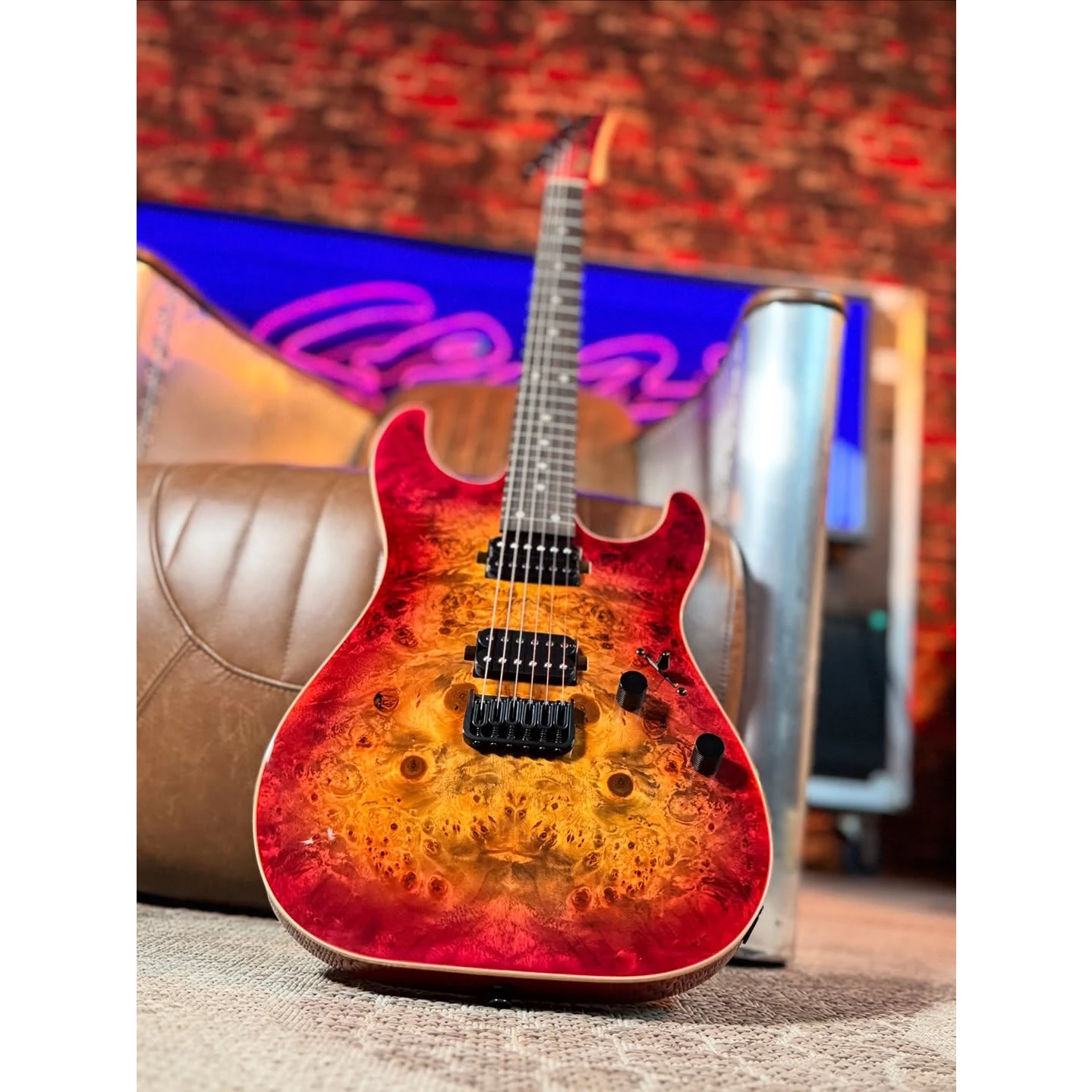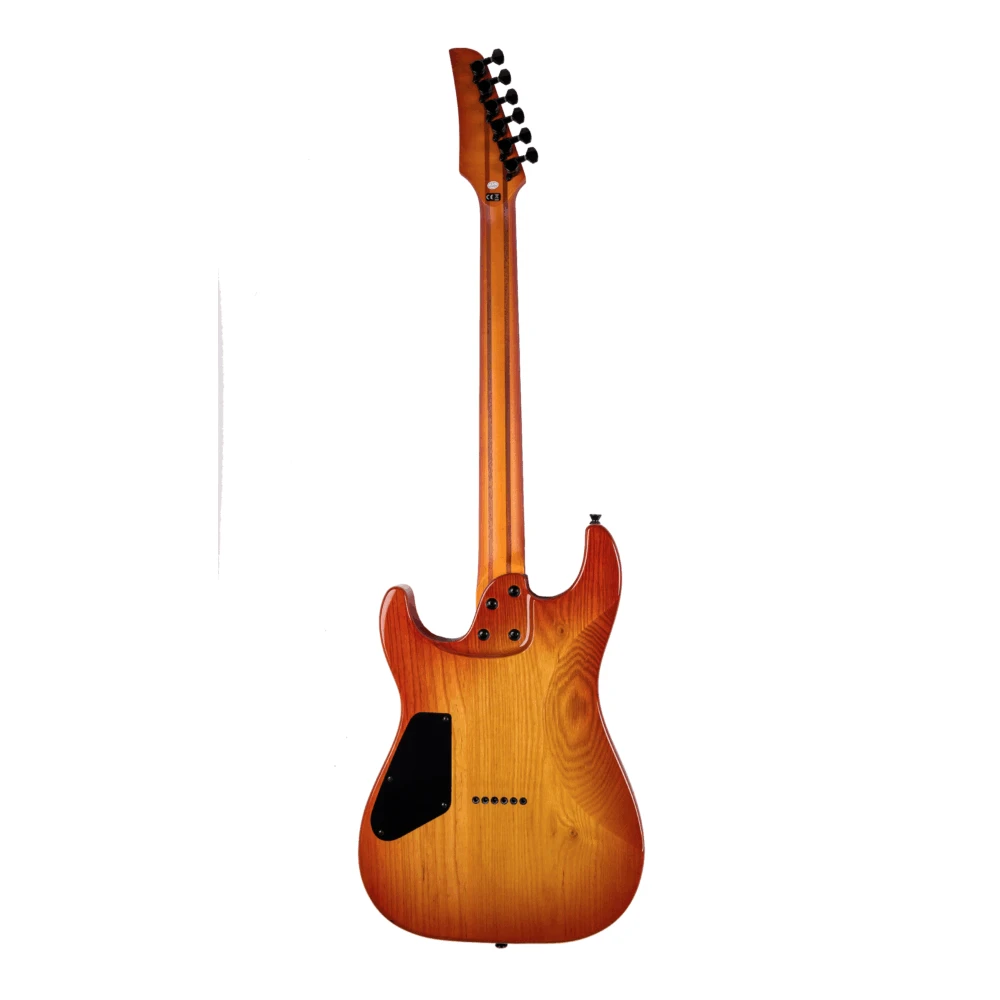 Guitarra Seizi Katana Shadow Ozielzinho Nebula Burst, modelo Signature, estilo Super Strat, com corpo em Mogno, Veneer Top em Quilted Maple, braço em Roasted Maple e escala em Rosewood. Possui tras... ver mais