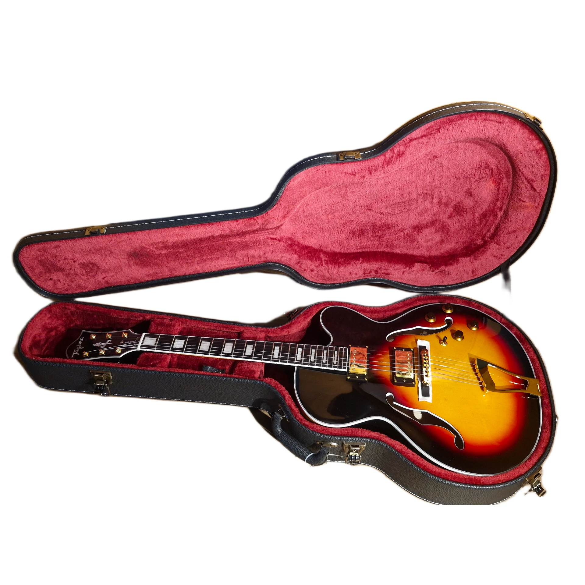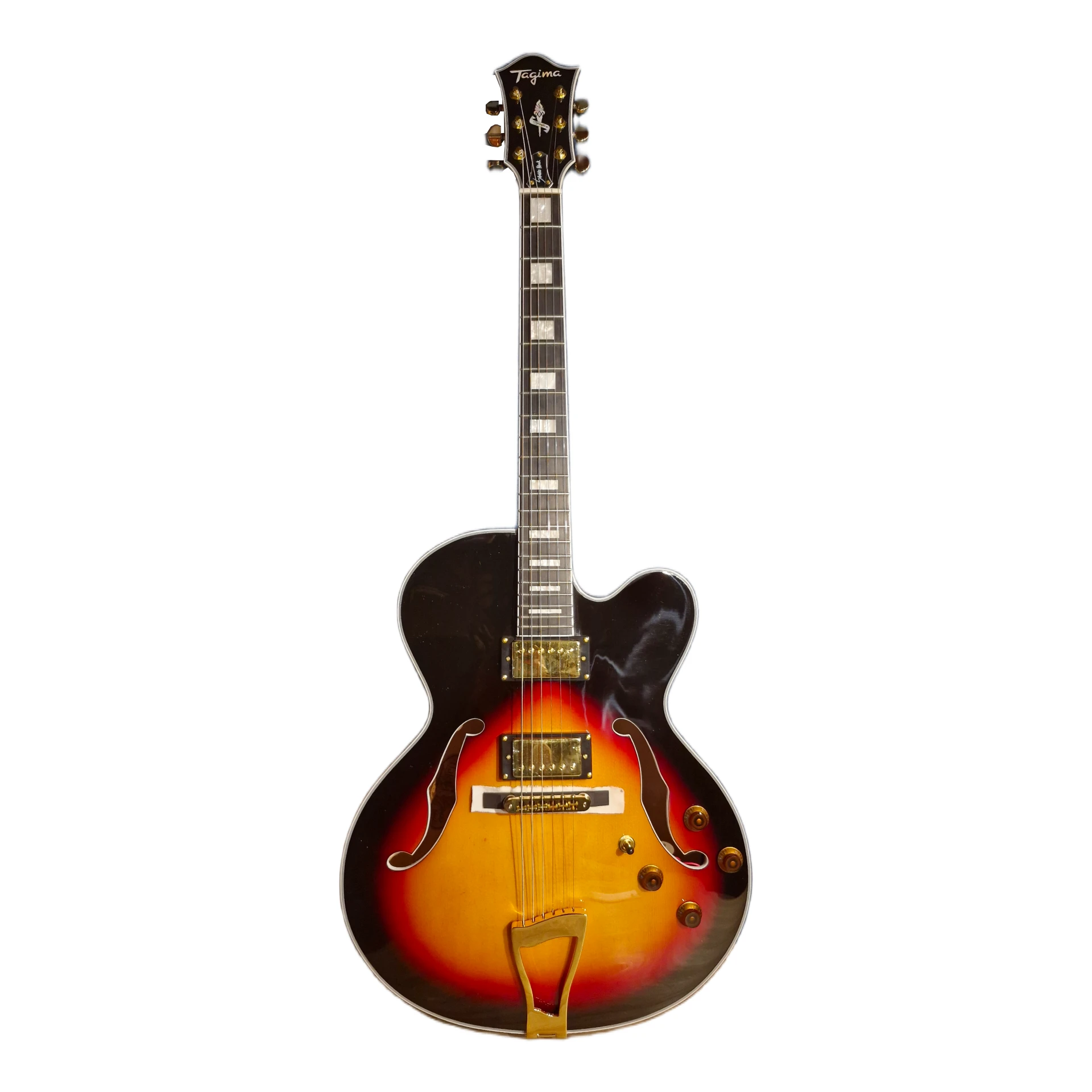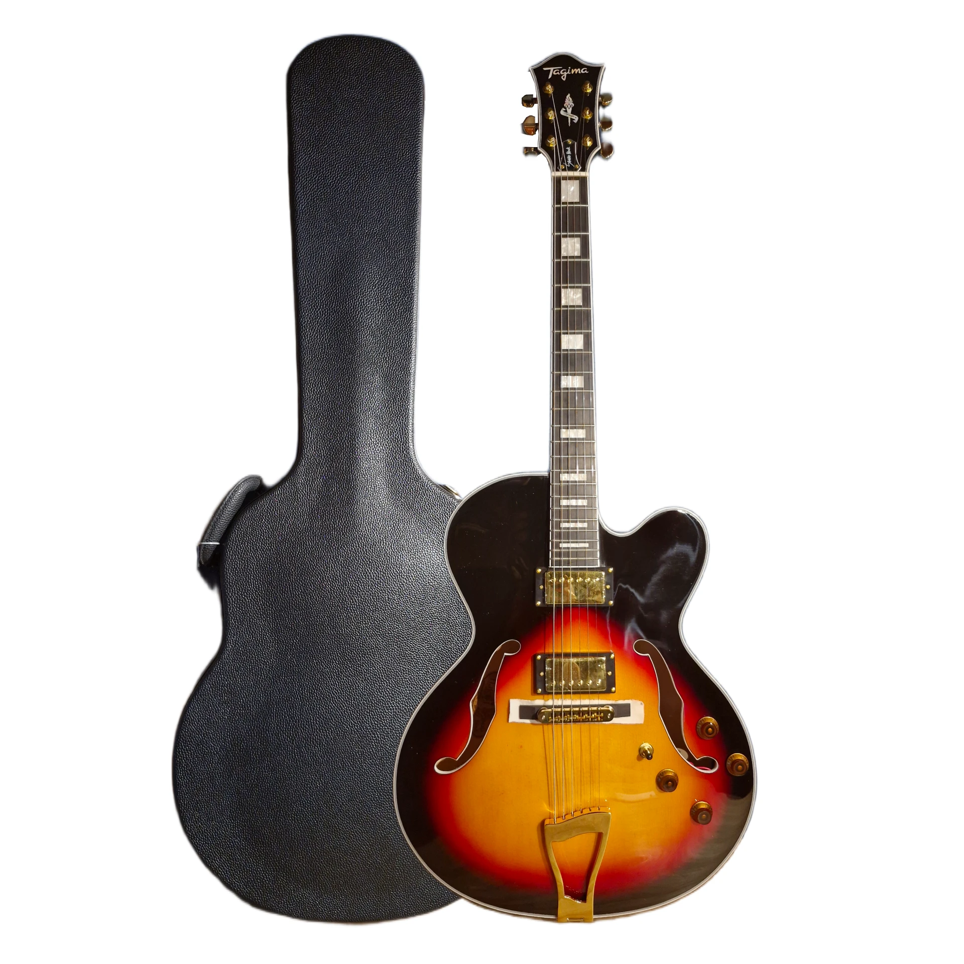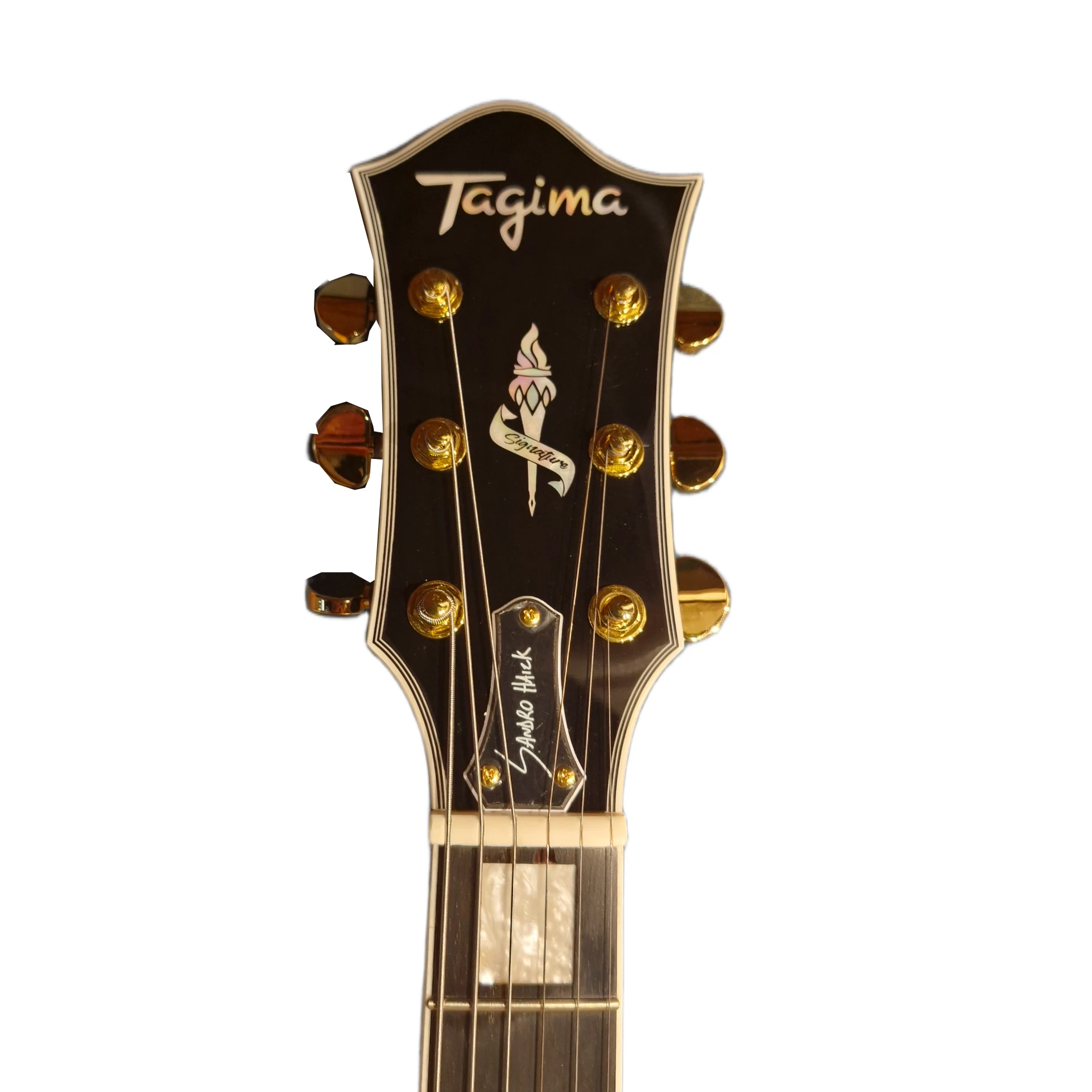 Os detalhes de construção chamam atenção: voluta reforçada, ferragens douradas, ponte em ébano e knobs diferenciados, tudo pensado para oferecer tanto estética quanto funcionalidade. As tarraxas Tagima de alta qualidade permitem ajustes de firmeza, mantendo a afinação estável mesmo em usos intensos de técnicas como bends e vibratos.