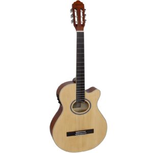 Violão Giannini Eletro Acústico modelo GNF-1D CEQ. Ele é um Mini Jumbo com Cutaway com encordoamento de Nylon. Disponível na cor Natural Satin com acabamento fosco.