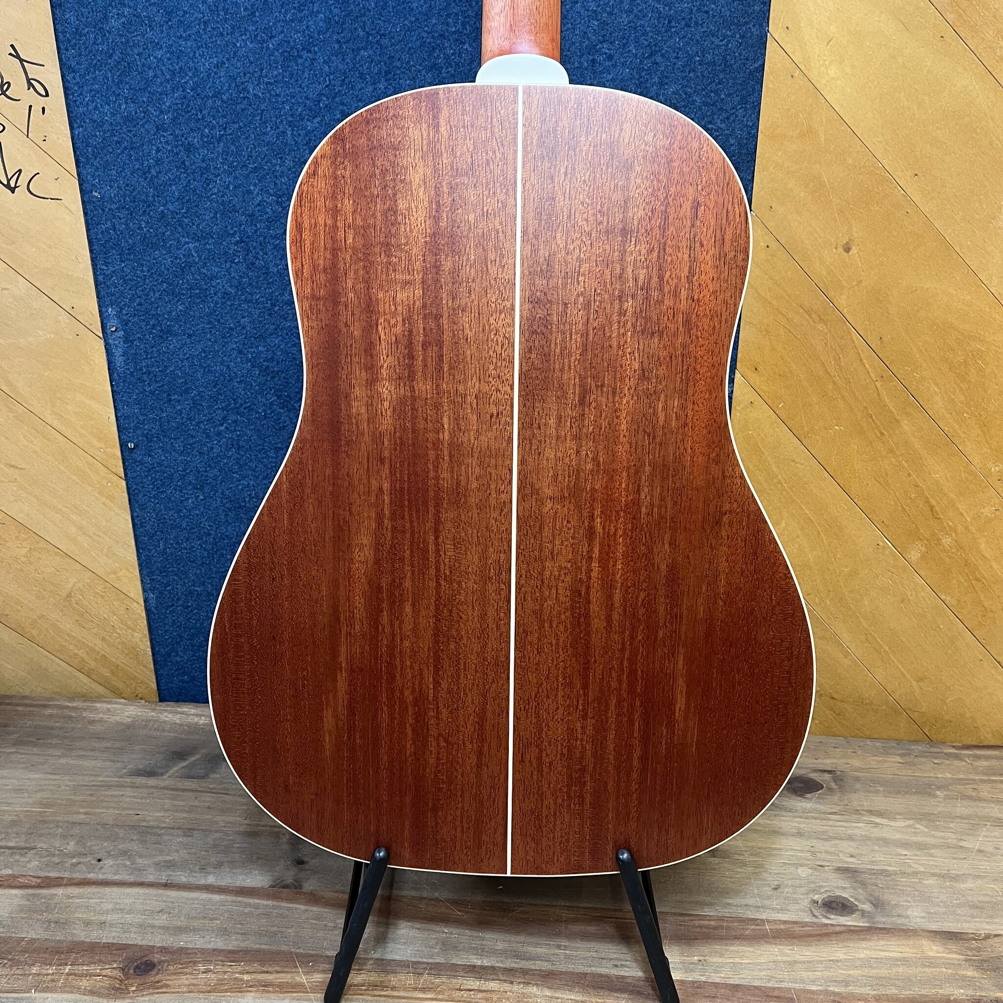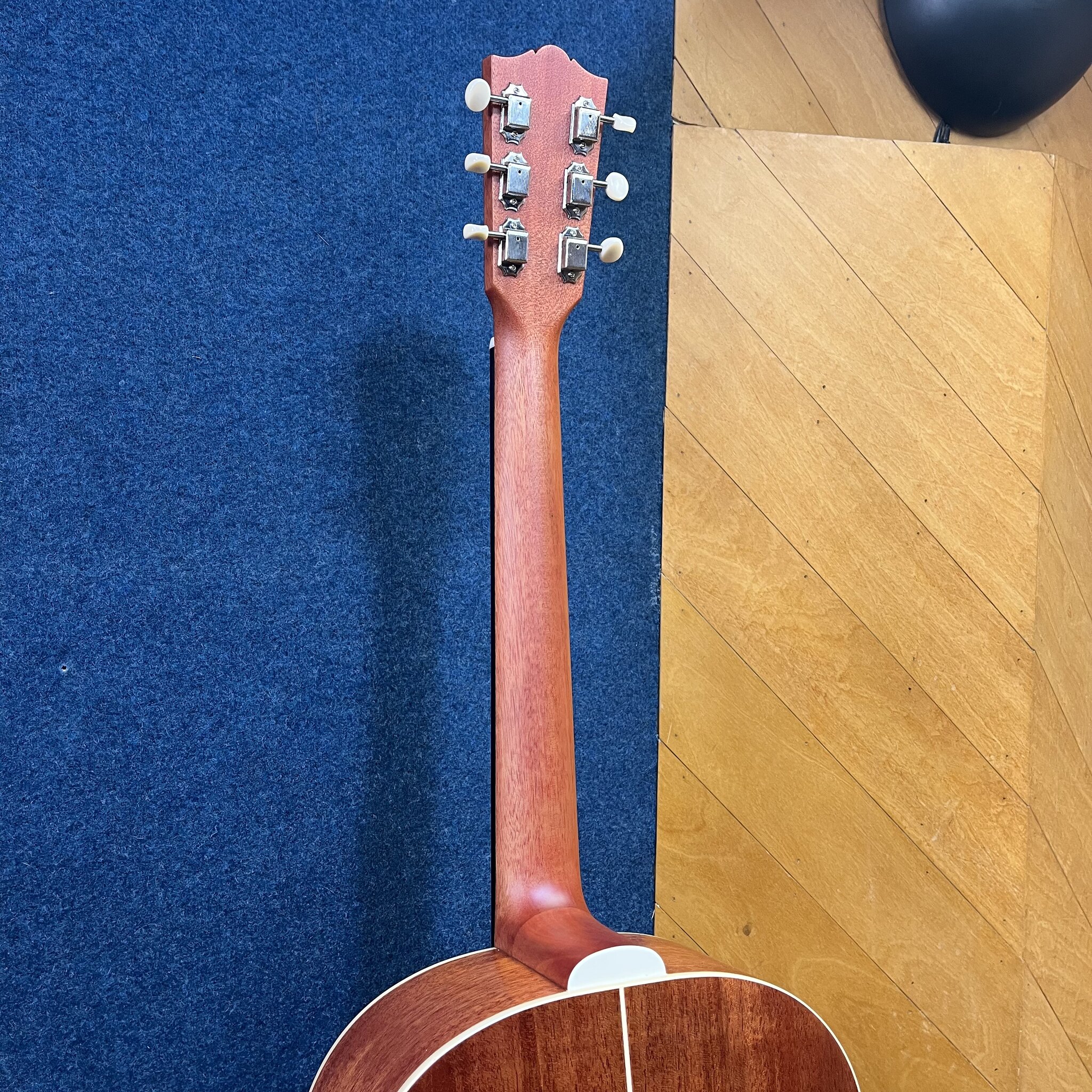 OM Stage E Mahogany entrega resposta equilibrada, conforto e o timbre quente característico da construção All Mahogany.