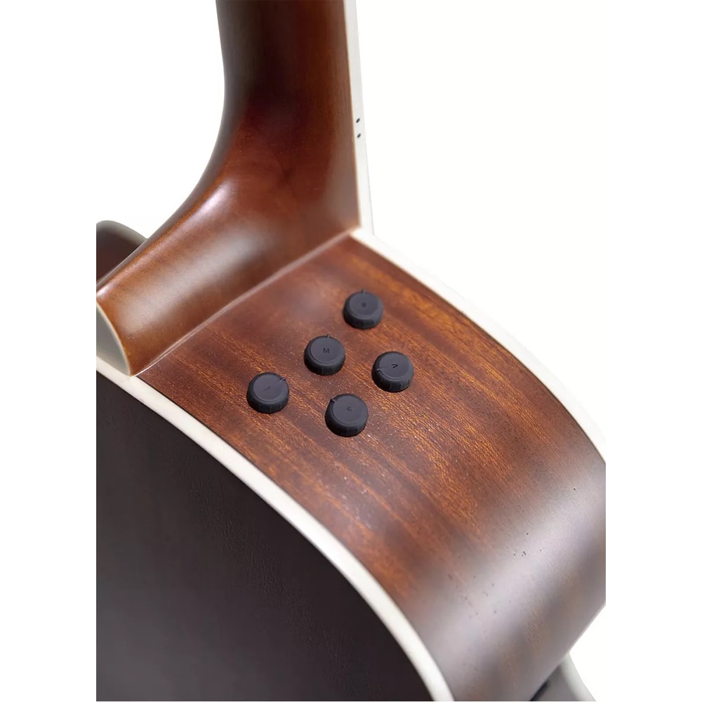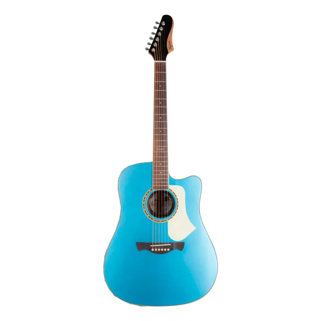 Modelo: Swell Deluxe LPB Formato: Dreadnought Folk com Cutaway Tampo: Spruce Sólido Lateral / Fundo: Sapele Braço: Okume com Shape em C Escala: Rosewood com C 25.5″ Cavalete: Rosewood Nut: 43mm Captação: Piezo EQ: Tagima TEQ-10 Cor: Lake Placid Blue (LPB)